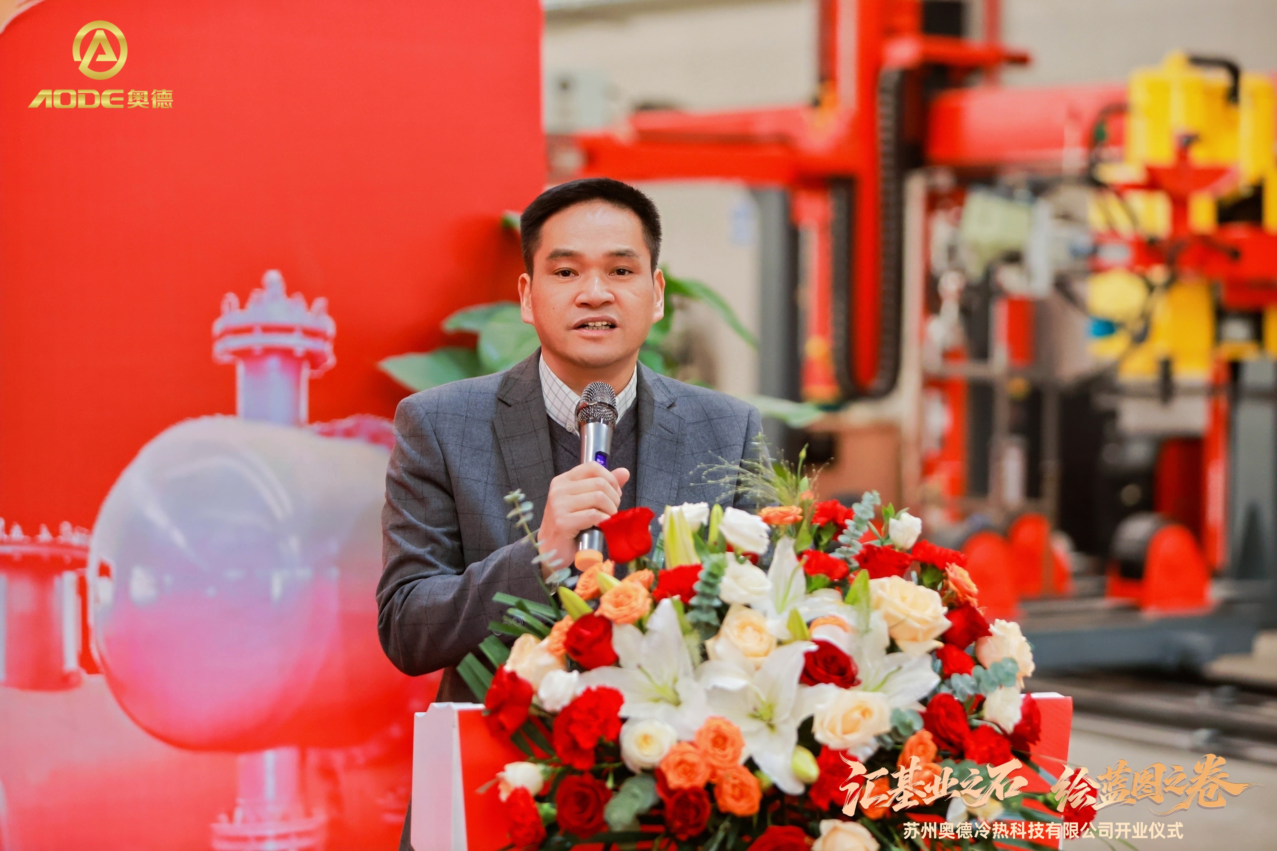 典礼以“基业之石”环节拉开帷幕。奥德装备董事长周定山首先致辞:“苏州奥德冷热科技公司的开业是奥德产业链整合的重要体现,有力的促进了奥德各公司之间的资源共享和资源互助,实现效益最大化,也将为奥德迈向工业温控装备的平台化发展做出重要贡献。”