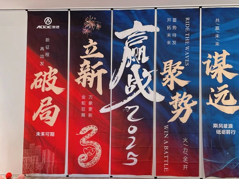 每支队伍轮流上台签署军事搜查令。市场就像战场,竞争激烈而残酷,但我们拥有最精英的团队和最优秀的将军!AODE公司2025年的销售目标已经下达,新的挑战就在眼前,开始是一场决定性的战斗,开始必须冲刺!让我们把决心转化为动力,带着胜利的心,在山上开路,在水中架桥,攀登新一轮业绩高峰。