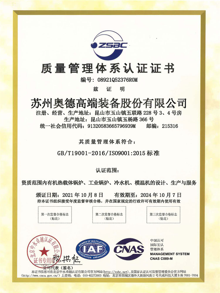 奥德于2004年成立于深圳,2007年在苏州成立苏州奥德高端装备股份有限公司,一直专注工业温度控制领域,是集研发、生产、销售为一体的温度控制设备制造企业,历经21年的创新发展与沉淀,奥德从早期的模温机、冷水机生产,发展到今天的工业温控装备系统集成、高端精密温控设备的研制。