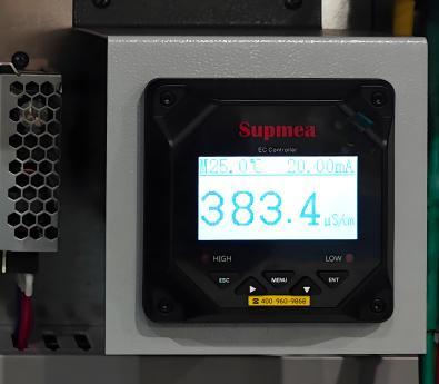 在内循环系统中增加树脂罐,降低电导率,并增加电导率仪,实时监测水中电导率。